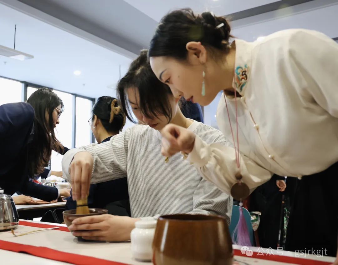 集團組織蘭內100余名女職工齊聚集團2樓大廳,在國家級茶藝師的指導下開啟茶文化之旅?;顒蝇F場,茶藝師以《茶經》典故為引,鋪展開一片東方樹葉穿越千年的文化長卷。從唐宋煎茶、明清瀹飲的流變,到綠茶清逸、紅茶醇厚的風骨;從茶馬古道的歷史回響,到“和敬清寂”的禪意哲思,女職工們循著茶香觸摸中華文明的脈絡。隨著古琴聲起,茶藝師手執茶筅,在茶盞中勻速擊拂,點茶的雪沫漸浮盞面;轉而捧起三才蓋碗,以太極回旋手法傾注茶湯,看銀針白毫在杯中云卷云舒。通過沉浸式體驗教學,大家認真練習“溫具、置茶、沖泡、分茶”等泡茶順序和手法,絲毫不敢懈怠,100余套青瓷茶具泠泠作響,女職工們或凝神觀摩茶湯色澤,或結對切磋注水力度,氤氳茶煙中流淌著對傳統文化藝術的敬仰。