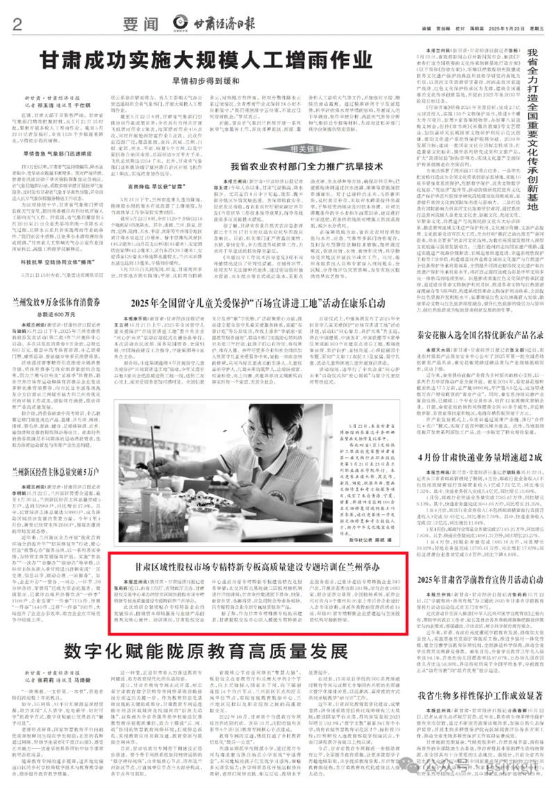 媒體關注 | 甘肅區域性股權市場專精特新專板高質量建設專題培訓在蘭州舉辦