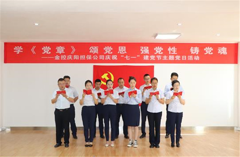6月30日,在中國共產(chǎn)黨建黨99周年之際,金控慶陽擔保黨支部開展以“學《黨章》、頌黨恩、強黨性、鑄黨魂”為主題的慶祝“七一”建黨節(jié)主題黨日活動,公司全體黨員重溫《入黨誓詞》,集體誦讀《中國共產(chǎn)黨章程》,感悟初心、牢記使命,推動集團公司黨委“轉(zhuǎn)觀念、破積習、追標桿、強基礎、提效能”主題實踐活動持續(xù)深入開展。