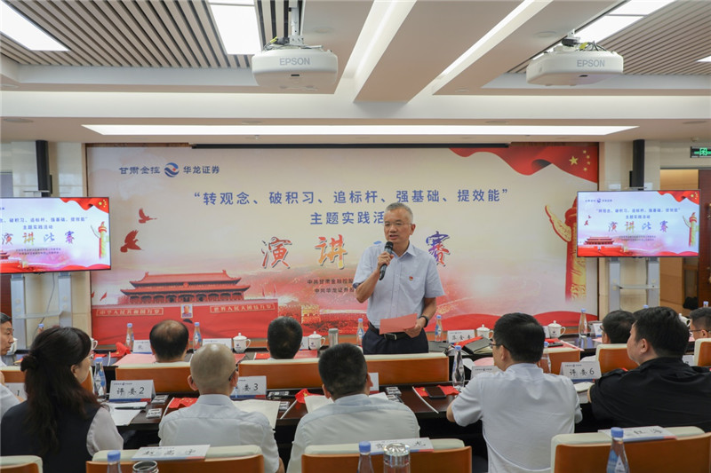 金控集團黨委書記、董事長,華龍證券黨委書記、董事長陳牧原致辭,指出在這個特殊的日子里,我們開展主題黨日活動和演講比賽,恭賀中國共產黨成立99周年,意義重大。同時強調,集團黨委針對經營管理中顯現的一些問題,在全系統開展“轉觀念、破積習、追標桿、強基礎、提效能”主題實踐活動,倡導廣大員工以自我革新的勇氣,破除企業行政化、機關化的積習陋習,樹牢市場經營觀念,對照標桿,俯身抬頭干實事,提高效能強執行,勇于進取,奮勇爭先,創造更好的業績,為黨旗添彩,為黨的生日獻禮。